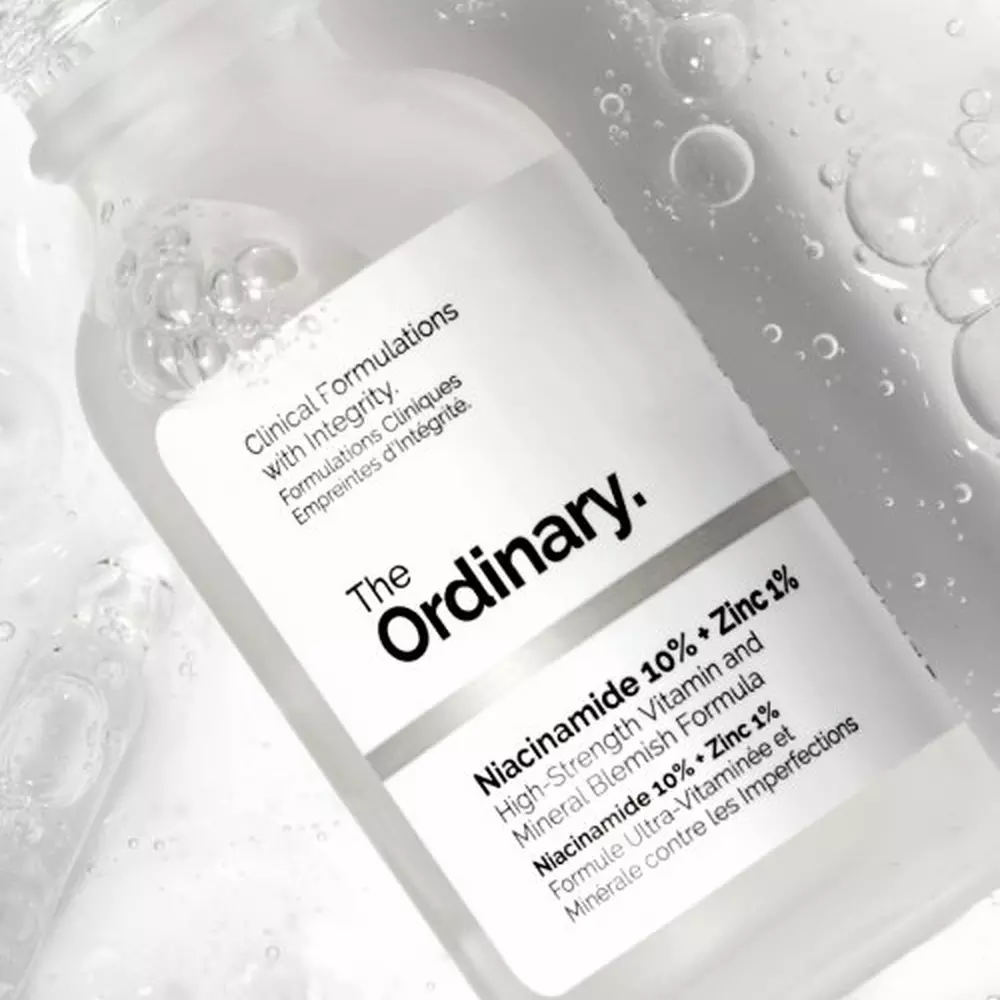 Sérum concentré à 10 % de niacinamide (vitamine B3) et 1 % de zinc PCA, conçu pour les peaux à imperfections : réduit l’apparence des pores dilatés, régule l’excès de sébum et unifie le teint
